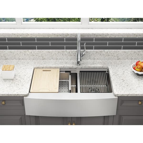Blanchard 33 in. Drop-in/Undermount 60/40 Double Bowl 18-Gauge Stainless Steel 1-Hole Retrofit Workstation Farm Sink