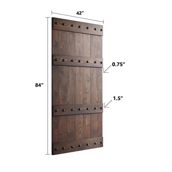 Castle Series 84 in. x 84 in. Dark Walnut DIY Knotty Wood Double Sliding Barn Door with Hardware Kit