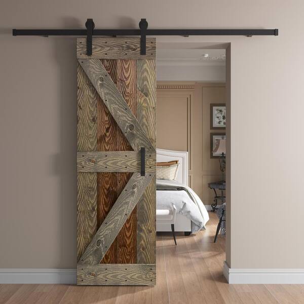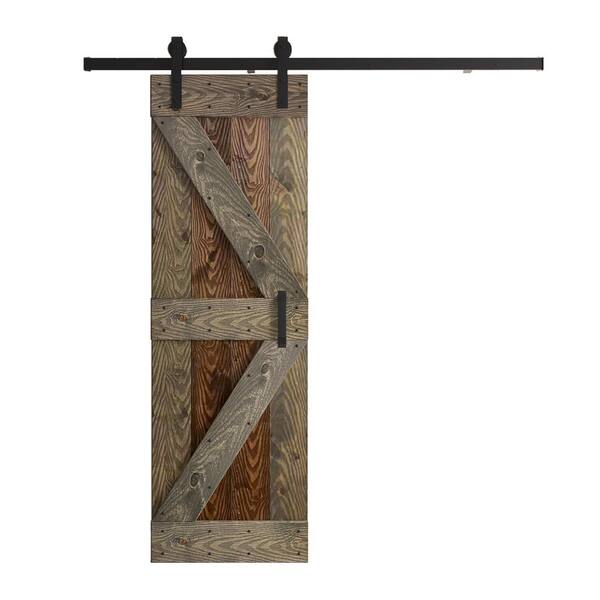 Coast Sequoia Embossing K Series 24 in. x 84 in. Dark Walnut/Aged Barrel Knotty Wood Sliding Door with Hardware Kit