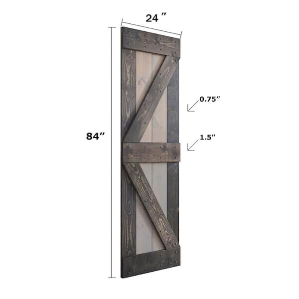 K Series 24 in. x 84 in. Light Grey/Carbon Grey Knotty Pine Wood Sliding Barn Door with Hardware Kit
