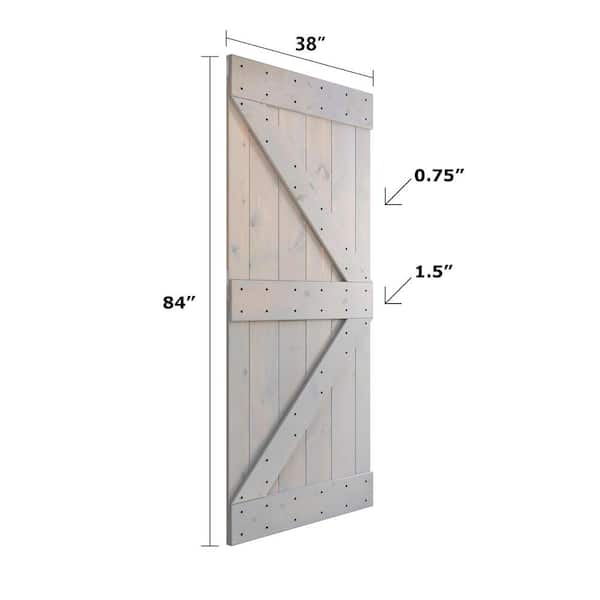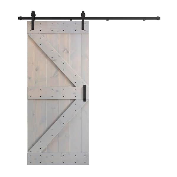 K Series 38 in. x 84 in. Light Grey DIY Knotty Pine Wood Sliding Barn Door with Hardware Kit