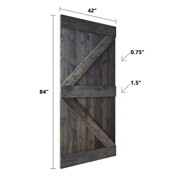 K Series 42 in. x 84 in. Carbon Grey DIY Knotty Pine Wood Sliding Barn Door with Hardware Kit