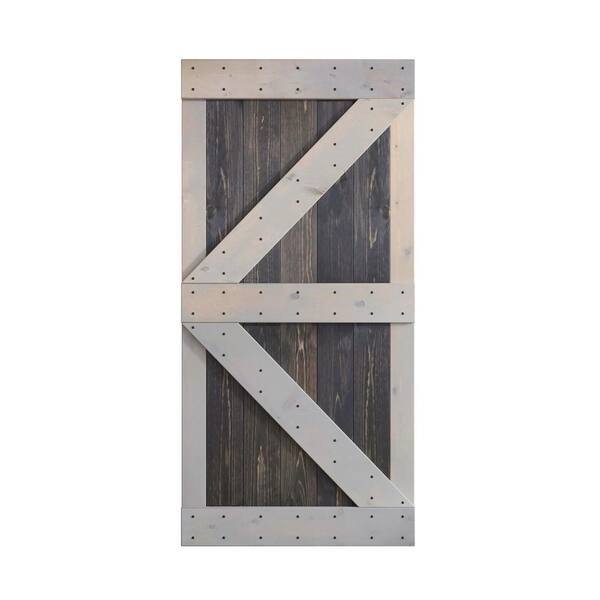 K Series 42 in. x 84 in. Carbon Grey/Light Grey Knotty Pine Wood Barn Door Slab