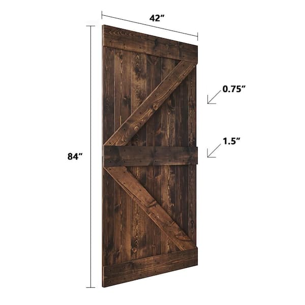 K Series 84 in. x 84 in. Kona Coffee DIY Knotty Wood Double Sliding Barn Door with Hardware Kit