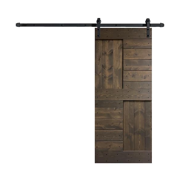 S Series 36 in. x 84 in. Smoky Grey Finish Knotty Pine Wood Sliding Barn Door with Hardware Kit