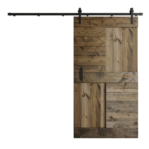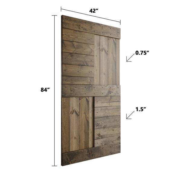 S Series 42 in. x 84 in. Aged Barrel DIY Knotty Wood Sliding Barn Door with Hardware Kit
