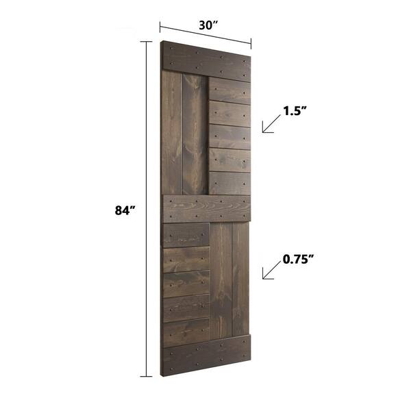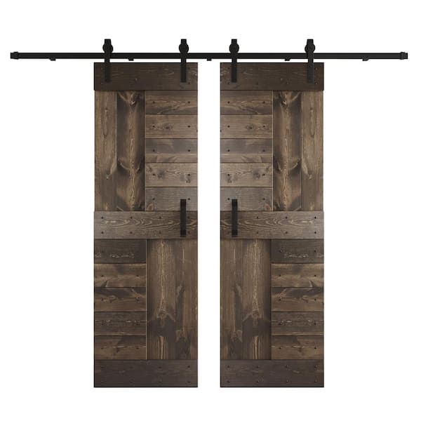 S Series 60 in. x 84 in. Smoky Gray DIY Knotty Wood Double Sliding Barn Door with Hardware Kit