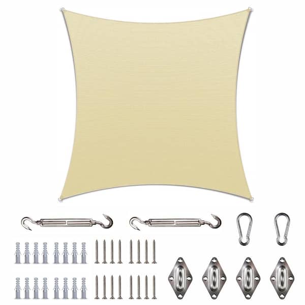 10 ft. x 10 ft. 190 GSM Beige Square Sun Shade Sail with Square Kit