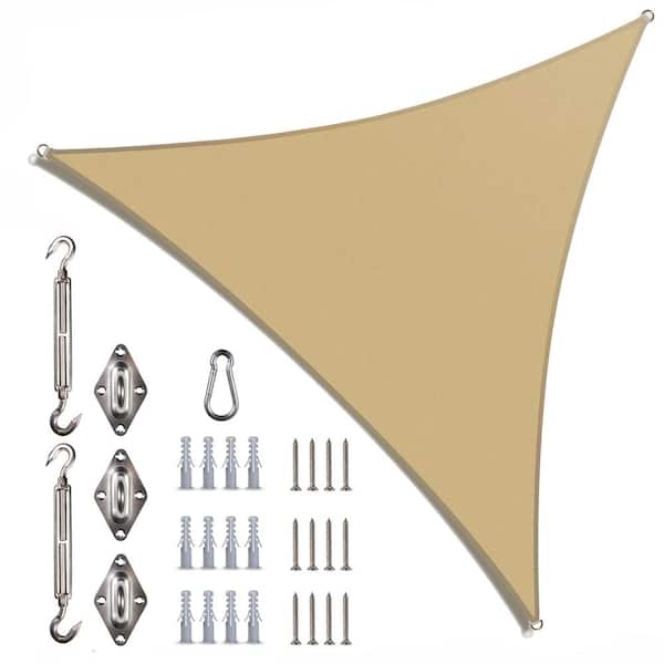 10 ft. x 10 ft. x 10 ft. 190 GSM Sand Beige Equilateral Triangle Sun Shade Sail with Triangle Kit