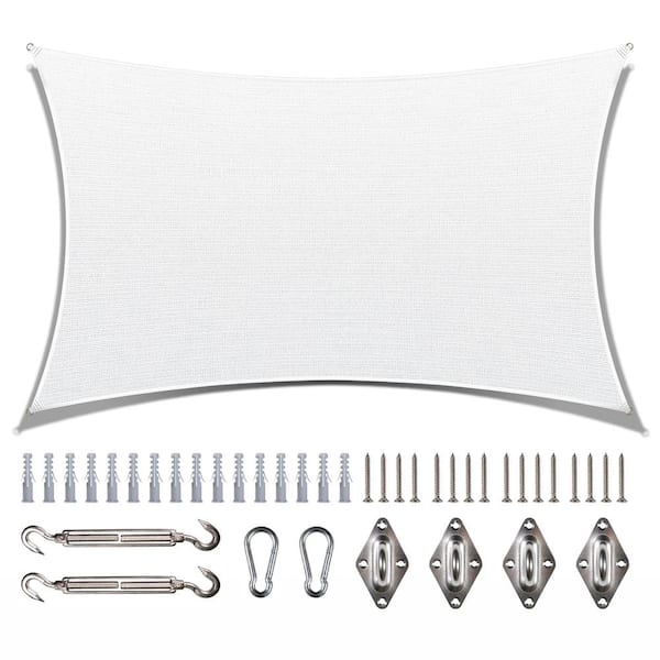14 ft. x 16 ft. 190 GSM White Rectangle Sun Shade Sail with Rectangle Kit