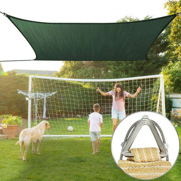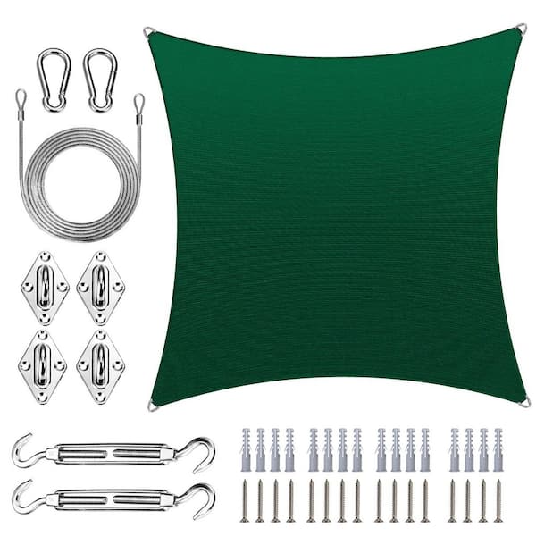 16 ft. x 16 ft. Square Pro Ring Sun Shade Sail with Hardware Kit and Rope-Green