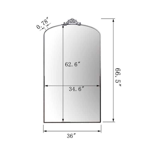 Antique Silver 36 in x 66.5 in Arch Metal Full Length Mirror, Entryway LivingRoom Bedroom Clothing Shop Vintage Ornate