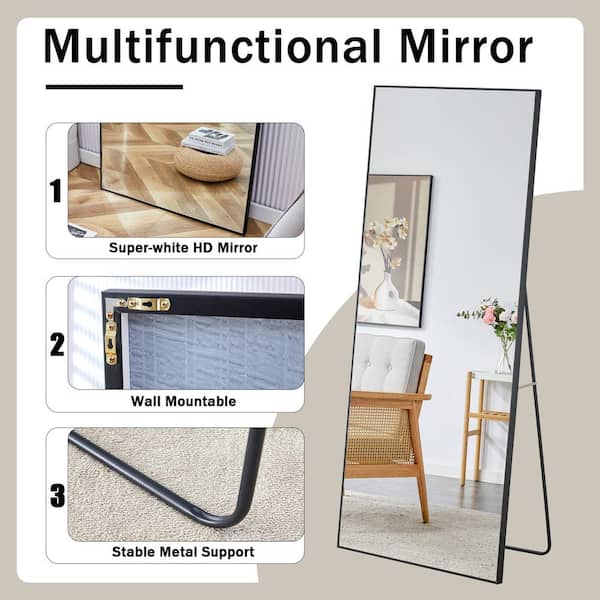 Black 31.4 in. W x 71 in. H Rectangle Wood Full Length Mirror, Floor standing bedroom porch dressing HD explosion-proof