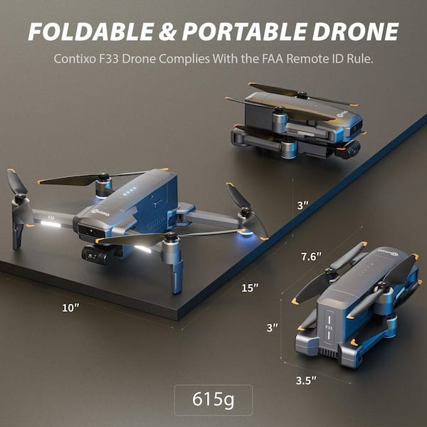 F33 Vortex 4K GPS Drone Travel Bundle-4 Batteries, 2-Axis Gimbal, 6 km Range, Fast Charger & Carrying Case
