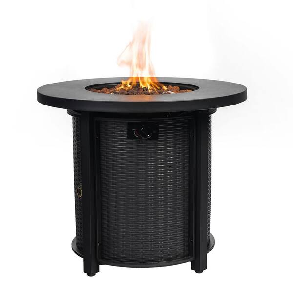 30 in. Propane Fire Pit Table 40000 BTU Outdoor Round Steel Gas Fire Pit Table with Fire Pit Lid, Rocks, ETL-Certified