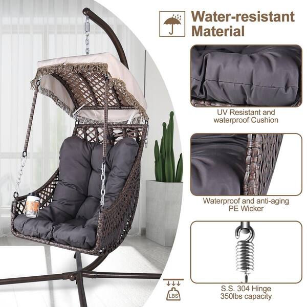 350 lbs. Swing Egg Chair with Stand UV Resistant Outdoor Hanging Chair with Cup Holder, Sunshade Cloth, Cushion, Pillow