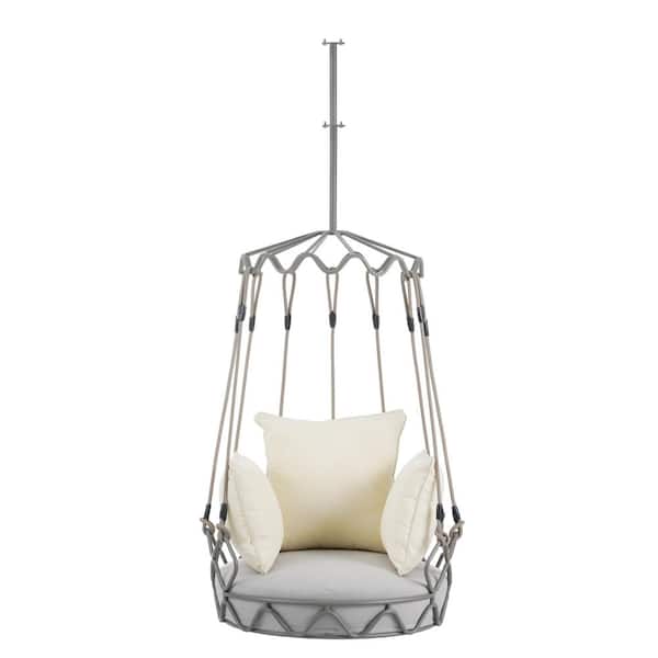 Outdoor Metal Patio Swing Chair, Hanging Chair W/UV Resistant Cushion, Olefin Fabric for Patio, Balcony, Beige