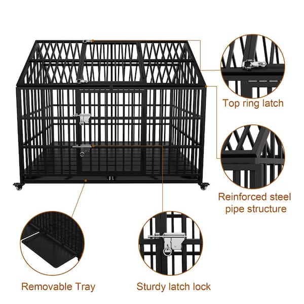 Outdoor Top Open Metal Bird House for Parrot, Large Dog, Cat, Rabbit with 2 Doors 4 Lockable Wheels 2 Removable Trays