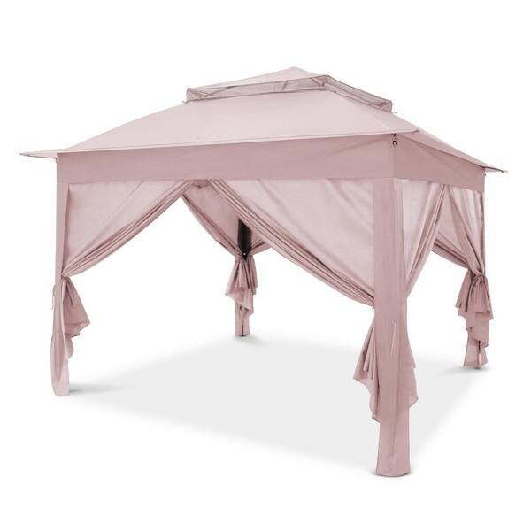 11 ft. x 11 ft. Pink Portable Pop up 2-Tier Gazebo with 4 Sidewalls Outdoor Canopy Shelter with Carry Bag