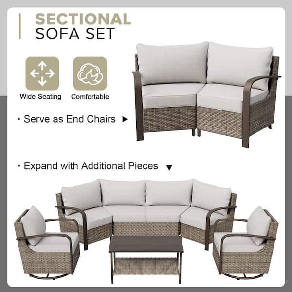 2-Seat Ergonomic Armrest Brown Wicker Patio Outdoor Sectional Sofa Set with Beige Cushions