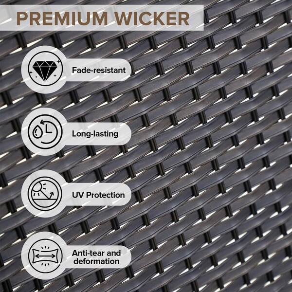 4-Piece Dark Brown Wicker Rattan Outdoor Patio Deep Seating Conversation Set with Coffee Table and Beige Cushions