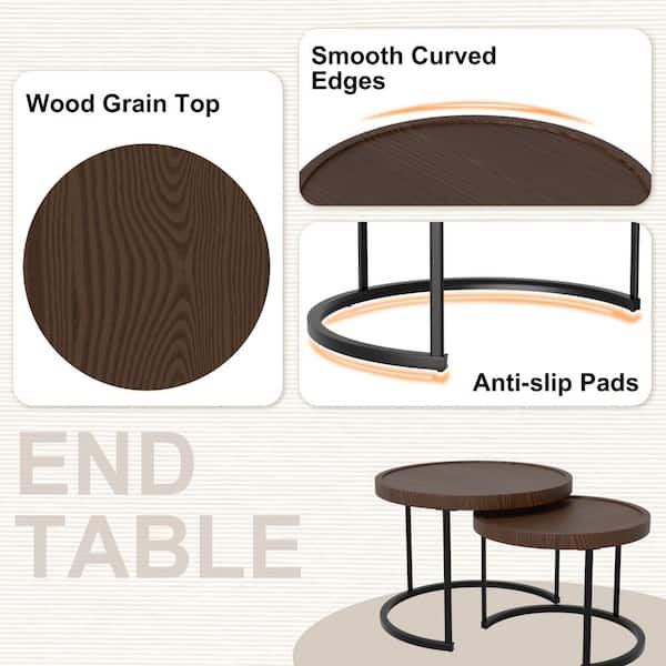 5-Piece Light Brown Wicker Outdoor Patio Sectional Sofa Seating Set with Wood Grain Top Coffee Tables, Blue Cushions