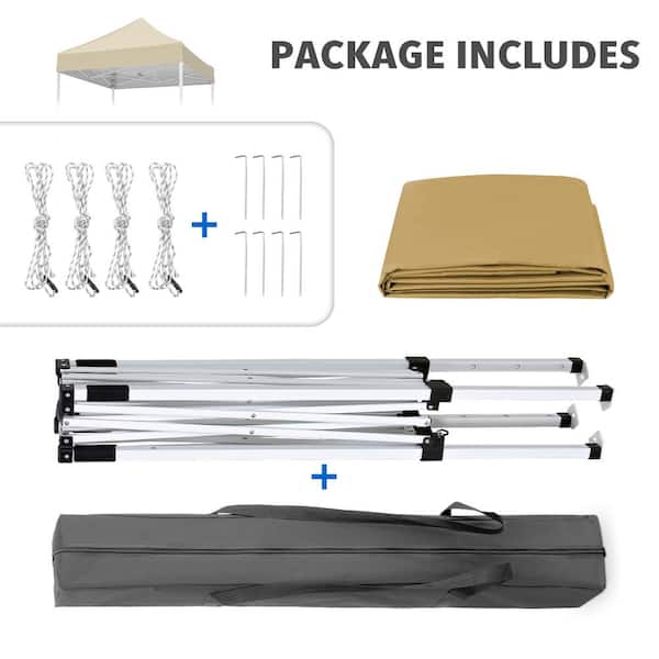 5 ft. x 5 ft. Beige Portable Instant Pop Up Canopy with Carry Bag, Adjustable Height, for Beach, Sports and Camping