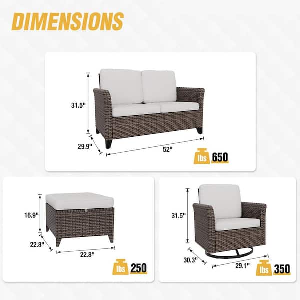 Brown Rattan Wicker 5-Piece Outdoor Patio Conversation Set with Beige Cushions, Ottomans