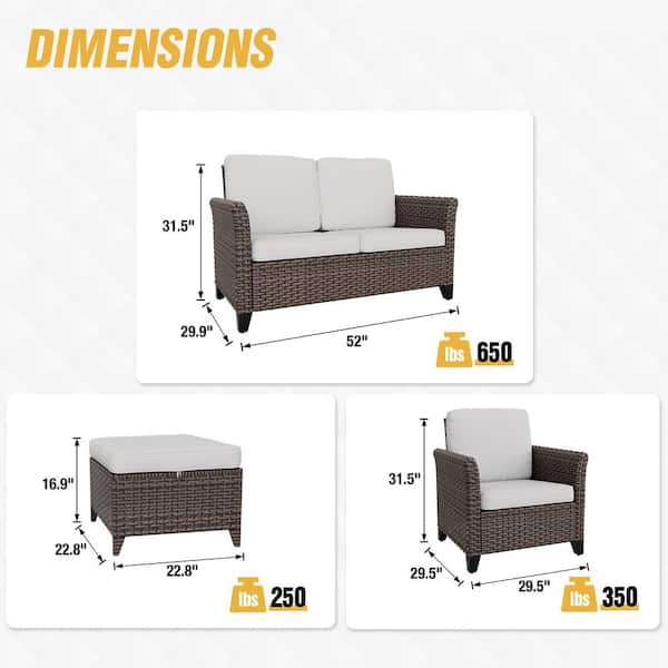 Brown Rattan Wicker 5-Piece Outdoor Patio Conversation Set with Cushions, Patio Chairs with Ottomans