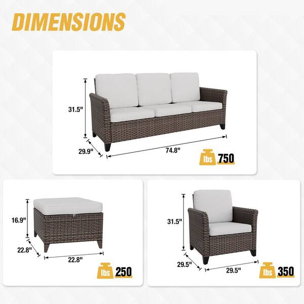 Brown Rattan Wicker 5-Piece Outdoor Patio Conversation Set with Cushions, Patio Chairs with Ottomans