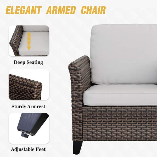 Brown Rattan Wicker 6-Piece Outdoor Patio Conversation Set with Beige Cushions, Patio Chairs with Ottomans