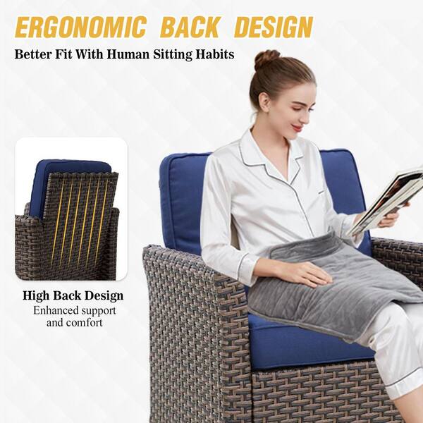 Brown Rattan Wicker 8-Piece Outdoor Patio Conversation Set with Blue Cushions, Side Table, Ottomans