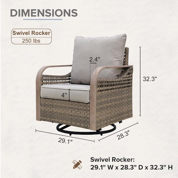Brown Wicker Outdoor Rocking Chair Patio Swivel Chair with Gray Cushions 2 Pack