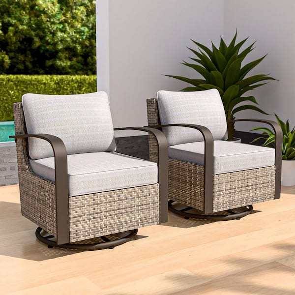Ergonomic Armrest Brown Wicker Patio Swivel Glider Outdoor Rocking Chair with Beige Cushions (2-Pack)