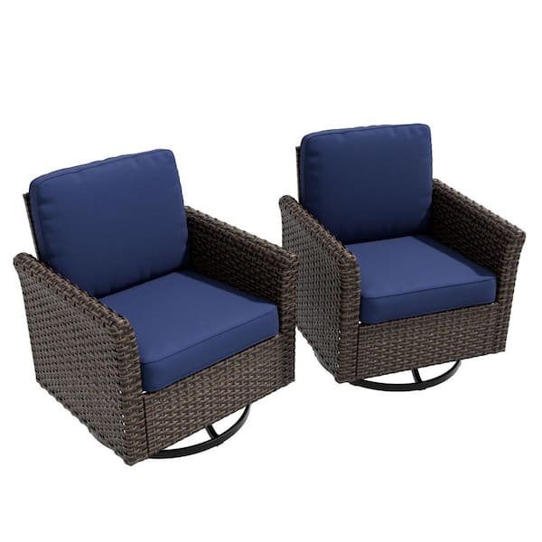 Wicker Patio Outdoor Rocking Chair Swivel Chair with Blue Cushions (2 pack)