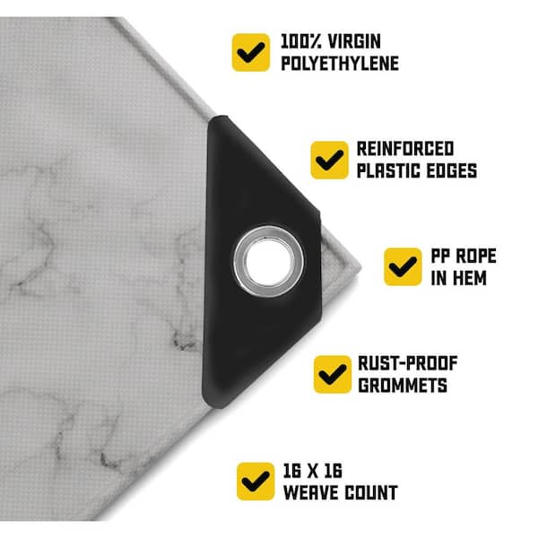10 ft. X 10 ft., Marble/White, Extreme Heavy Duty 20 Mil Tarp Cover, Waterproof, UV Resistant