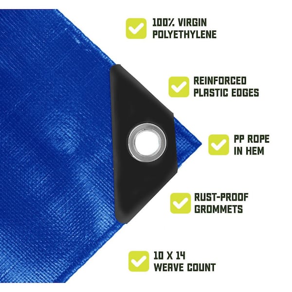 • 100% virgin polyethylene makes tarp tear resistant; built to last