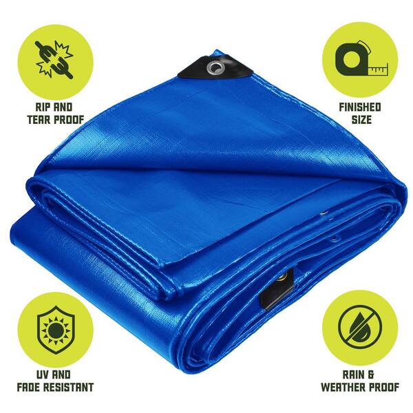 20 ft. x 20 ft. Blue 8 Mil Heavy Duty Polyethylene Tarp, Waterproof, UV Resistant, Rip and Tear Proof
