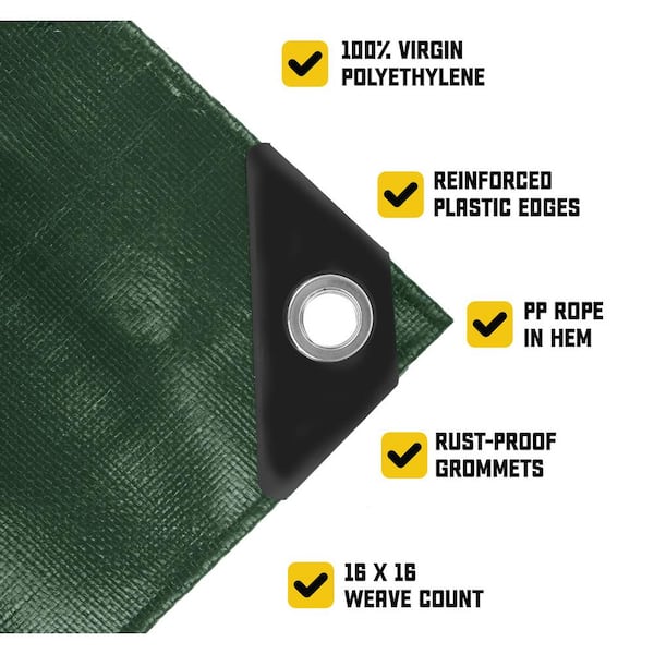 • 100% virgin polyethylene makes tarp tear resistant; built to last