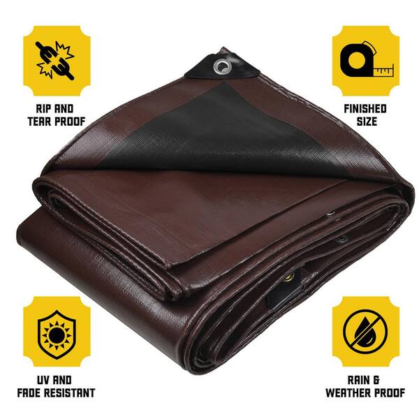 20 ft. x 30 ft. Brown/Black 10 Mil Heavy Duty Polyethylene Tarp, Waterproof, UV Resistant, Rip and Tear Proof
