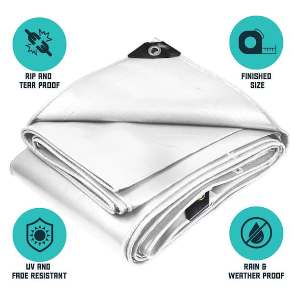 20 ft. x 35 ft. White 16 Mil Heavy Duty Polyethylene Tarp, Waterproof, UV Resistant, Rip and Tear Proof