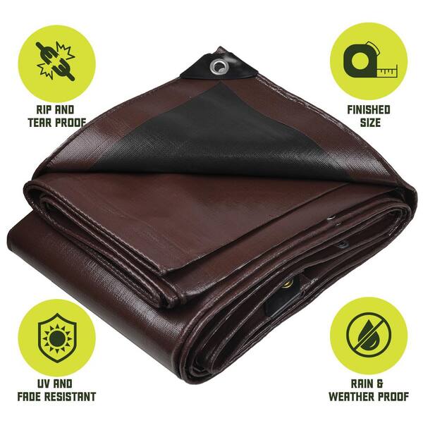 24 ft. x 24 ft. Brown/Black 8 Mil Heavy Duty Polyethylene Tarp, Waterproof, UV Resistant, Rip and Tear Proof