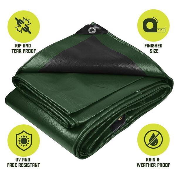 40 ft. x 40 ft. Green/Black 8 Mil Heavy Duty Polyethylene Tarp, Waterproof, UV Resistant, Rip and Tear Proof