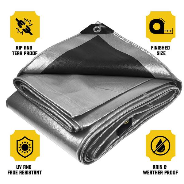 50 ft. x 50 ft. Silver/Black 10 Mil Heavy Duty Polyethylene Tarp, Waterproof, UV Resistant, Rip and Tear Proof