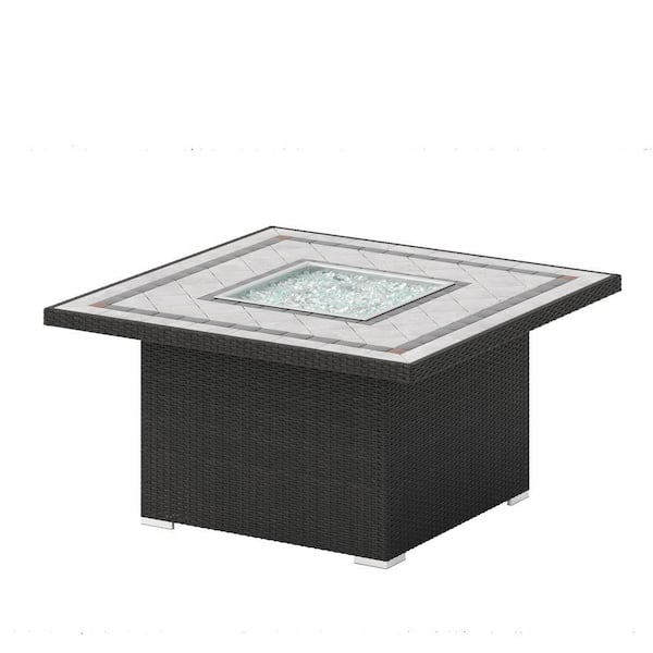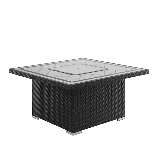Square Wicker Propane Outdoor Fire Pit Table with Tile Tabletop