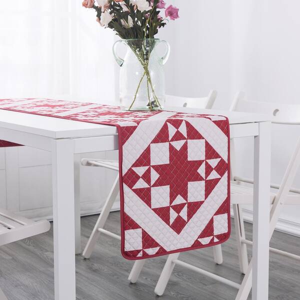 Little Stars 14 in. W x 72 in. L Red Quilted Microfiber Table Runner