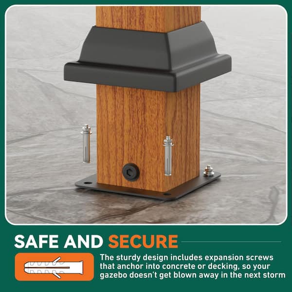 Ultra Series 12 ft. x 14 ft. Permanent Hardtop Gazebo With Solar LED Lights, Mosquito Nettings, Wood Looking