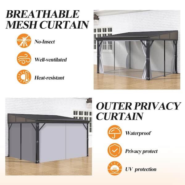 10 ft. x 12 ft. Aluminum Lean to Gazebos Pergola with Sloping Roof, Outdoor Wall-Mounted for Patio