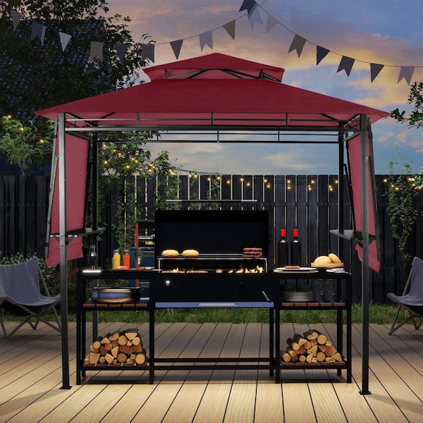 13.5 ft. x 4 ft. Steel Frame Grill Gazebo with Waterproof Red Canopy