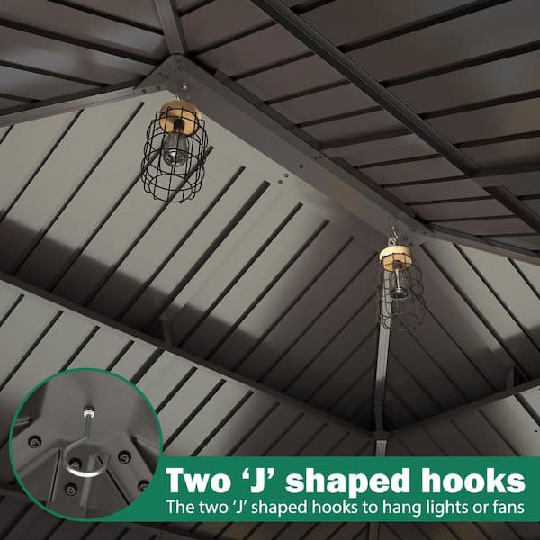 13 ft. x 15 ft. Outdoor Patio Wood Frame Gazebo, Double Galvanized Steel Roof Hardtop Gazebos with Netting and Curtains